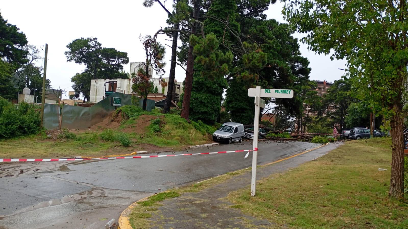 Cayó un árbol sobre un auto en Valle Fértil y Pejerrey.
